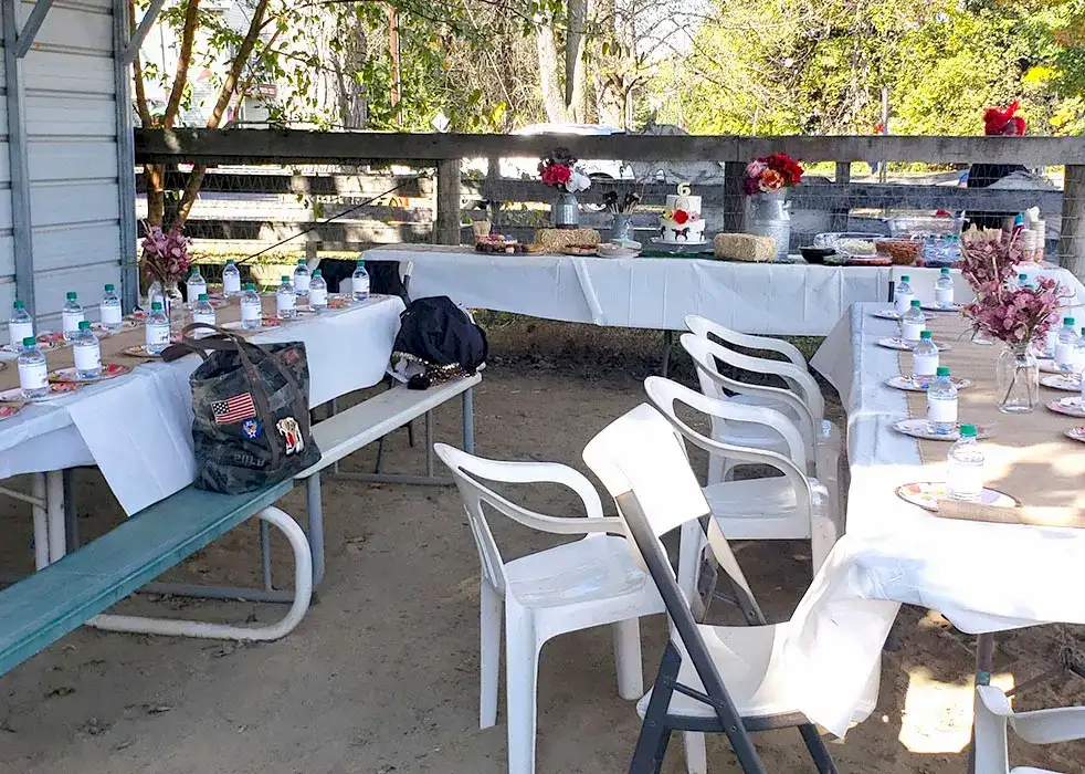 A shaded area where the food and (your) cake will be served