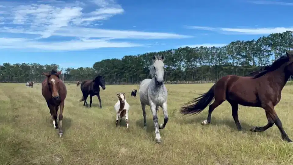 Besides our retired school horses, they also rescue wild mustangs which are either retrained by Cat Z or put onto sanctuary if they are deemed unsuitable for rehoming. Currently, there are thirty-five rescued, sanctuary, and retired horses on property being cared for by our Florida team.